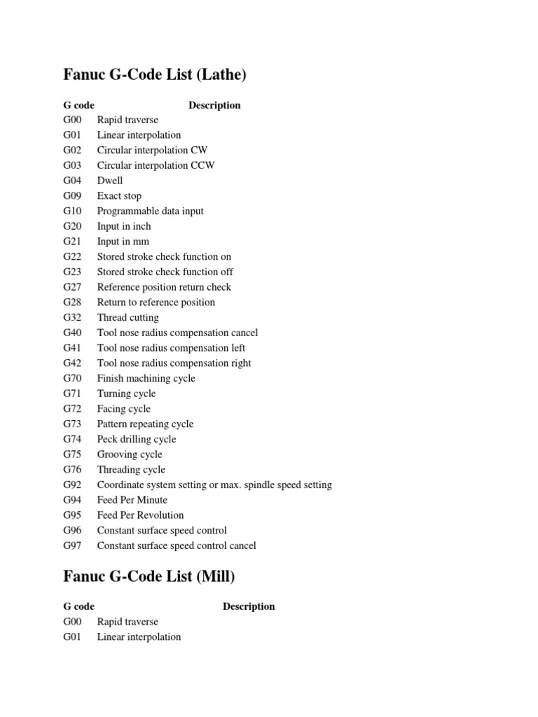 Haas G Codes M Codes List For Cnc Lathe And Mill Haas Fanuc G Code And M Code Pdf Download Cnclathing